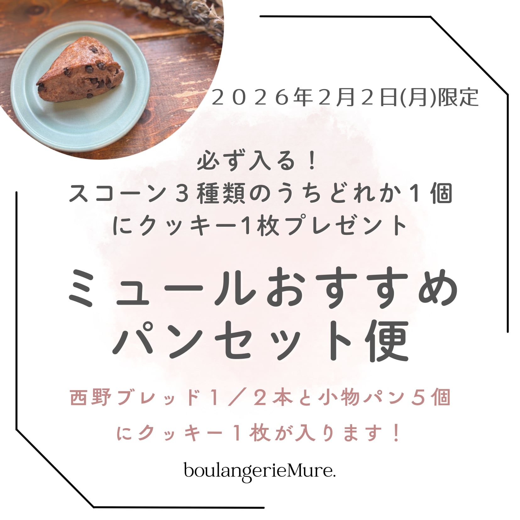 2月2日限定!ミュール人気スコーン3種類のうちどれか1個が必ず入る!+クッキー1枚プレゼント【常温便】西野ブレッド角(かく)1/2とミュールおすすめパンセット便